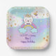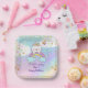 Cute Unicorn Cat Rainbow Girl 1st Birthday Party Paper Plate