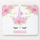 Beautiful Mouse Pad featuring a cute Unicorn face with lovely pink watercolor florals and faux glitter tiny little hearts. A lovely pink text name which you can change from the Personalize menu.