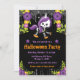 Cute Unicorn Floral Halloween design with a black polka dot background and black dripping glitter