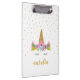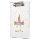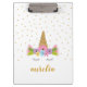 Cute Unicorn Gold Glitter Girly Custom Name Clipboard