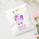 Favour bags with a whimsical drawing of a cool and funky pink cubby unicorn which has a purple mane and tail. This cute creature is wearing heart-shaped sunglasses and is decorated with little stars.