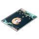 cute unicorn on a moon with pastel clouds and stars as string lights