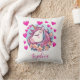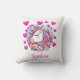 Cute Unicorn, Pink Hearts & Flowers, Custom Name Cushion