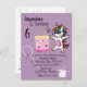 Cute purple birthday design decorated with a dancing unicorn. This design is easy to personalise. Please contact me for help finding matching items.
