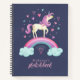 A cute unicorn with hearts and a rainbow decorate this sketchbook. Personalise it with her name. A fun gift for an artsy girl. Designed for you by Blackberry Boulevard.