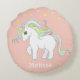 Cute unicorn with stars on light coral pink Round Pillow. Name can be personalised.