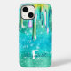 Cute pretty Iridescent turquoise drips faux glitter monogram I-Phone case features modern glitter luxury Chic girly shimmer unicorn rainbow Iridescent blue ocean glitter and holographic drips. Beautiful, modern and cool cover for girls who enjoy classy sparkly designs. Show off your personal style, look fashionable, trendy and feel stylish with a unique design on a mobile device accessory or customise it over another product of your choice. Add your name it with a cool and modern calligraphy typography. It makes the perfect gift idea for a sweet 16 birthday, wedding, bridal shower, anniversaries, baby showers or bachelorette parties, valentines day or as a gift in general.