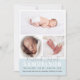 Lovely modern look and unique with 3 photos photo collage (pictures) in a white and soft pastel light blue for that newborn new baby boy. Birth Announcement cards - easy editable - add your text and pictures. Send these cute cards to your family, friends and co-workers