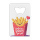 A cute and colorful cartoon illustration of a red French fries carton with a happy kawaii smiling face. The design features a floating red heart and the romantic funny pun quote "I only have FRIES for you". The image has a white sticker border, making it perfect for Valentine's Day greeting cards, fast food lovers, and humorous romantic gifts. Isolated design.