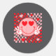 Cute Valentine Smile Face Smiling Checkered Patter Classic Round Sticker