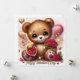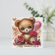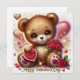 Say "Happy Valentine's Day" in the sweetest way possible with this charming greeting card featuring a cuddly teddy bear holding a heart-shaped box of chocolates and a bouquet of vibrant roses. This heartwarming illustration is perfect for expressing your love and affection to your sweetheart, family, or friends. Send a message of love and warmth with this adorable and heartfelt Valentine's Day card.