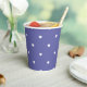 This cute paper cup features small white heart pattern on a trendy dark periwinkle background. Great for Valentine's Day or a girl's birthday party.