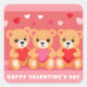 Cute Valentines Day Teddy Bear Heart Pink Red Square Sticker