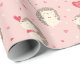 Cute valentine's hedgehogs with hearts on pink wrapping paper