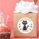 This adorable and whimsical sticker features a charming black cartoon cat dressed as a vampire, complete with tiny fangs and a flowing purple cape. The cat exudes a playful Halloween vibe, surrounded by colourful candies, including the iconic candy corn, adding a festive touch to the design. The sticker proudly displays the phrase “I Vant Some Candy,” capturing the fun spirit of trick-or-treating. To make it even more special, there’s an option to personalise the sticker with your child's name at the bottom, creating a unique and delightful accessory for Halloween celebrations. Perfect for adding a touch of spooky fun to notebooks, lunchboxes, trick or treat bags or party favours!