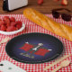 A cute cartoon vampire dressed as Dracula spreads his red-lined cloak in this original work by Richard H. Fay.