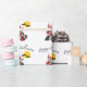 This custom wrapping paper features a cute Halloween theme. An image of a girl vampire is pictured at the bottom, standing in front of her haunted castle. A cute little black cat is sitting next to the vampire girl, and a full moon is shining bright in the night sky. A couple of spooky bats are flying above. It's great for a festive birthday party or other Halloween celebration.