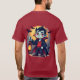 I give wanted to give this a 4 instead of a 5 because these Basic DARK T0shirts run unexpectedly SLIM or Narrow. Which is great if you do not have a potbelly, but I have a paunch. It isn't the shirt's fault that I've got a beer belly. The design and shirt itself is a quality cotton shirt. The color is more of a deep purple, but still a very pretty color. The Basic DARK T-shirts run a bit SLIMMER than the Basic Ts. The neck is a fraction narrower (or seems to be narrower) also. I'm a paunchy middle-aged woman and my neck is 12 inches (31cm) thick and the neckline fell about the same as in the photo of the man, and I had the desire to tug it a bit. So if you're a thick necked man or like loose shirts, be aware these are slimmer shirts. Once I get rid of my lockdown paunch it'll look great. The shirt washed well in cold water with no apparent bleeding. We don't have a dryer, so it hung dry. Did not shrink. Love the colors and the design. The design looks smaller on my shirt than it does on the model on-line. But still, it looks good on the shirt. The printing looks as it does on the model, just the size seems fractionally smaller. Washed garment in cold water, hung dry and design appeared unaffected.