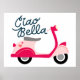 This is a cute little scooter design that features "Ciao Bella" in pretty handwritting. Great gift for a new baby's nursery or kids room.