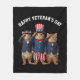 Show your appreciation in the most adorable way with this unique Veteran's Day fleece blanket. Featuring three charming cats dressed in patriotic clothes, saluting proudly beneath the message"Happy Veteran's Day." This blanket is a heartwarming tribute with a touch of feline flair. Perfect for cat lovers, veterans, and anyone who wants to celebrate in style and a smile.