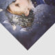 A moody vintage-style portrait depicting a young girl in profile, dressed in an elegant Victorian-inspired gown with a high collar, delicate lace trim, and decorative gold accents. Her expression is calm and thoughtful, with soft features and pale skin illuminated against a misty, atmospheric background. The deep navy blue of her dress contrasts beautifully with the cool, muted tones surrounding her. Resting gently atop her head is a crown of trailing ivy and small leaves, forming a natural wreath from which several small pale birds perch peacefully. The birds appear relaxed and curious, creating a sense of quiet harmony between the girl and the natural world. The ivy cascades softly around her hair, blending botanical textures with the refined elegance of the portrait. The composition evokes the feeling of a classical painted portrait infused with a whimsical woodland narrative. The soft lighting, subdued palette, and delicate natural details give the artwork a dreamy, slightly ethereal quality. Artwork similar to a stylized Victorian portrait combined with romantic botanical illustration and soft classical oil painting……PERFECT FOR: Decoupage furniture projects, vintage inspired décor, mixed media art, journal covers, decorative panels, handmade gifts, gothic romance décor, cottagecore interiors, art journals, craft fair items, whimsical wall art, romantic home décor….. 🖤 NOTE 1. This design is available in two options: Left and Right. You can find them in the Collection shown below. If they don’t appear there, try searching for their unique identifiers: FF5L for the Left design and FF5R for the Right version… 🖤 NOTE 2. The 18 lb tissue is a great choice if you like a little extra strength—it's easier to handle, resists tearing and allows for gentle repositioning. It’s also more opaque, making it perfect for darker surfaces. The 10 lb tissue is wonderfully lightweight and flexible giving you that smooth, blended finish. It’s ideal for layering on furniture or smaller projects so treat it gently and it will reward you with stunning results!.….🖤 NOTE 3. All items with this particular design share my unique identifying “Letter/s Number/s” label in the title for easy searching. …..🖤
