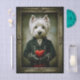 A refined and charming anthropomorphic portrait showcases a distinguished West Highland White Terrier dressed in an elegant, dark Victorian style coat adorned with rows of polished brass buttons. The crisp white fur of the Westie contrasts beautifully with the garment and the muted, antiqued background. Held gently in gloved hands is a vibrant red heart, adding a warm focal point and a touch of symbolism—perfect for themes of love, loyalty, or Valentine’s crafts. The ornate vintage frame, complete with carved flourishes and aged patina, reinforces the classical, dark academia aesthetic. Artwork similar to traditional anthropomorphic portrait paintings with a vintage fine art finish……COLOR COMBINATIONS: Soft white, charcoal, green, brass, gold, sepia, cream, red……PERFECT FOR: Decoupage, mixed media, collage, Valentine’s crafts, gift boxes, wall panels, dark academia décor, gothic cottagecore projects and upcycled furniture panels.….🖤 NOTE 1. The 18 lb tissue is a great choice if you like a little extra strength—it's easier to handle, resists tearing and allows for gentle repositioning. It’s also more opaque, making it perfect for darker surfaces. The 10 lb tissue is wonderfully lightweight and flexible giving you that smooth, blended finish. It’s ideal for layering on furniture or smaller projects so treat it gently and it will reward you with stunning results!.….🖤 NOTE 2. All items with this particular design share my unique identifying “Letter/s Number/s” label in the title for easy searching. …..🖤