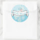 Baby Boy Shower Sticker A cute Vintage Banner Chalkboard Inspired Aesthetic Style Font. Blue and White Stripes and a cute old fashioned baby buggy stroller.