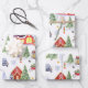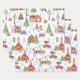 Cute Vintage Christmas Village with Christmas Tree Wrapping Paper Sheet