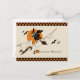 A cute, black, white, and orange, vintage illustration of a little, old witch, riding her broom stick, over a clothesline with towels and blankets hanging off of it. The witch is riding across a bright, orange, full moon, with a group of black bats. On the illustration it says, "Halloween Greetings," next to a little pumpkin. The witch has white hair, a black pointed hat, and a black dress with a white collar on it. Very whimsical and adorable. Great for those who love Halloween, vintage art, pumpkins, and witches. Check out my shop, SpookyGhost, for more vintage Halloween gifts.