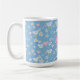 Enjoy your drinks with this cute vintage country geese patterned coffee mug with your personalised monogram initial or name. This cute vintage country goose personalised coffee mug with personalised monogram features a hand drawn repeating pattern of country geese, daisies, and hearts on a dusty blue background. This cute silly goose pattern is an original pattern made by OhMyStarling!