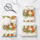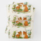 Wrapping paper sheets with a delightful drawing of a pair of foxes with a friendly bird nearby. Surrounded by holly and pine cones and other winter foliage.