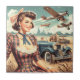 Cute Vintage Girl Illustration Tile