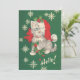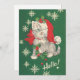 Cute Vintage Green Red Christmas Cat Holiday Card.