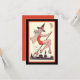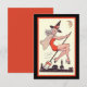 Cute Vintage Halloween Girl Witch Riding A Broom Holiday Card.