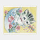 Cute Vintage Image Kitten Umbrella Spring Flowers Fleece Blanket