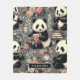 Cute Vintage Panda Floral Fleece Blanket