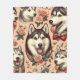 Cute Vintage Siberian Husky Illustration Fleece Blanket