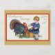 This Thanksgiving, anyone would love to receive some good wishes and autumn greetings with this cute vintage postcard featuring a retro illustration of a boy and a turkey!