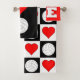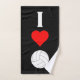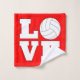A super cute three-piece towel set for volleyball lovers. Featuring three pillows - one with a chequered pattern of volleyballs and hearts, one with a vertical "I Heart Volleyball" design, and one with a square volleyball LOVE typographic design. All with matching red, white and black colours. These make a fun and useful gift idea for volleyball lovers of all ages!