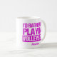 I'd rather be playing volleyball mug in pretty personalised pink writing for a womens volleyball coach or player. Cute volleyball humour gift for your team.