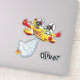 This cheerful and vibrant sticker features a friendly, smiling cartoon firefighter aircraft (fireplane) in action, releasing a plume of water over flames.