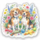 Stickers with sweet watercolor Beagles that are standing in flowers with dog toys. An adorable sticker for dog lovers or Beagle owners to stick on water bottles, phone cases or tablet cases.
