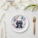 Cute Watercolor Black Kitten Balloons Birthday Paper Plate