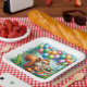 Squirrel themed birthday party paper plates for a little girl or boy's woodland themed birthday party. Sweet squirrel holding a birthday gift surrounded by birthday balloons in blue, yellow, green, orange, purple and pink.