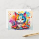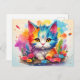 cute cat in rainbow colors with flowers in the style of a watercolor image.