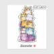 A vibrant and minimalist watercolor image featuring a stack of cute cats. The cats are playful and endearing manner, each with their unique expressions. Click Personalise this template to customise this cute sticker with your name.
