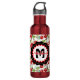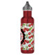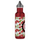 A watercolor ai illustration pattern of shiny red cherries, sage green foliage personalised water bottle.
