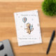 Cute watercolor first birthday invitation with a dragon holding a blue balloon. Illustrated and designed by Patricia Alvarez.