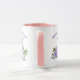 Cute Watercolor Easter Bunny Rabbit in a pastel flower bed. This sweet illustration shows a white bunny standing up on her back feet sniffing the air. Happy Easter! is written in a curved, light purple typeface font with a slight drop shadow. The design is on both sides of the mug, so it shows no matter which handle you use. So cute! Ideal for Easter. Available in many styles, colours and sizes.
