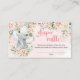 Cute watercolor elephant blush roses diaper raffle enclosure card